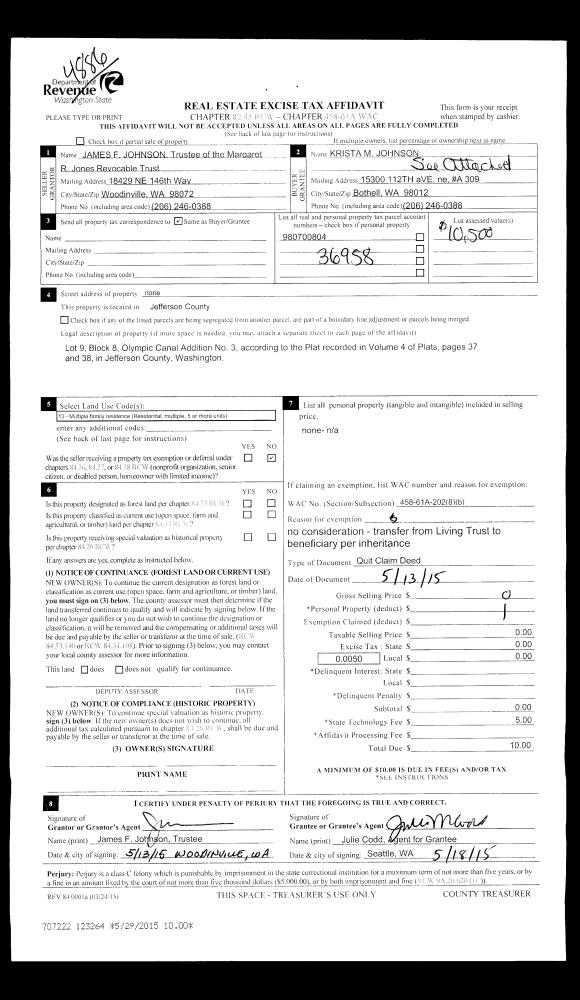 | 4 | 12/25/2003 | QCD | Quit Claim Deed | JONES, MARGARET R/TRUST | JOHNSON, KRISTA M | 0 | 0 | $0.00 | 99320 | 0 |