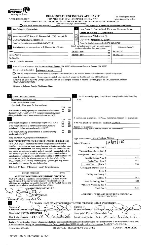 | 1 | 12/27/2018 | PRD | Personal Representatives Deed | | | | | | 131671 | |