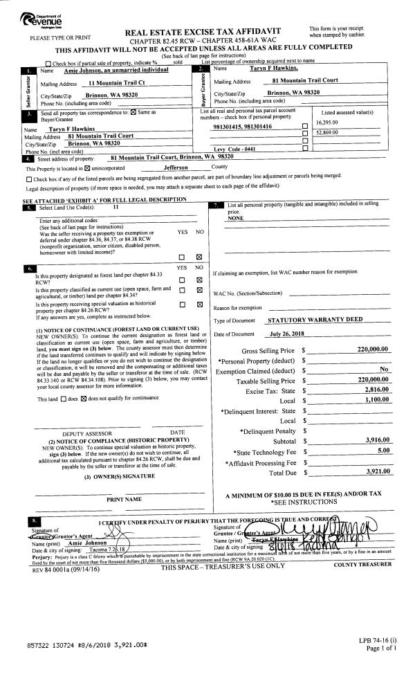 | 1 | 03/15/2018 | SWD | Statutory Warranty Deed | DOROTHY LAND | NICK & JESSICA FIREY | | | $75,000.00 | 129790 | |
