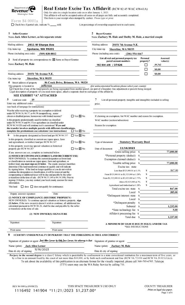 | 1 | 11/16/2023 | SWD | Statutory Warranty Deed | JACK ALLEN LERNER | ZACHARY M & SHELBY M HALE | | | $77,000.00 | 141904 | |