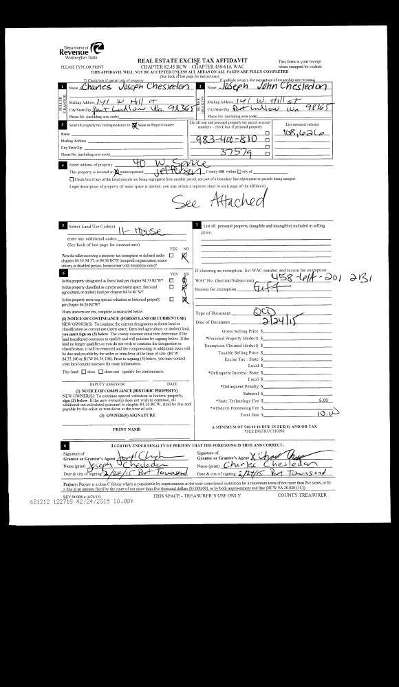 | 3 | 05/15/2013 | QCD | Quit Claim Deed | JOSEPH J CHESLEDON | CHARLES JOSEPH CHESLEDON | | | | 119267 | |