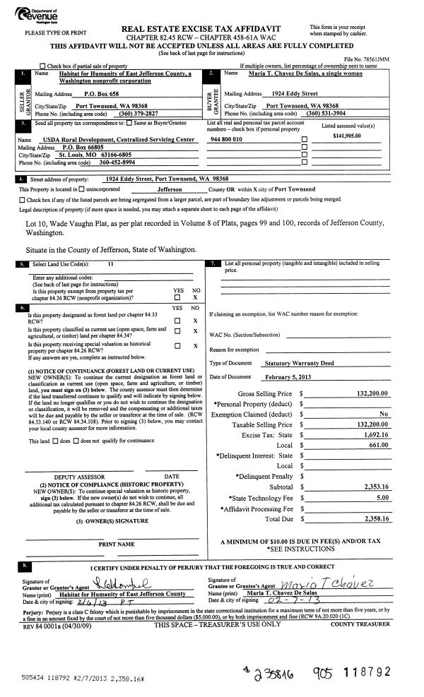 | Mailing Address: | 40 W MAPLE ST PORT LUDLOW, WA 98365-9790 | % Ownership: | 100.0000000000% |