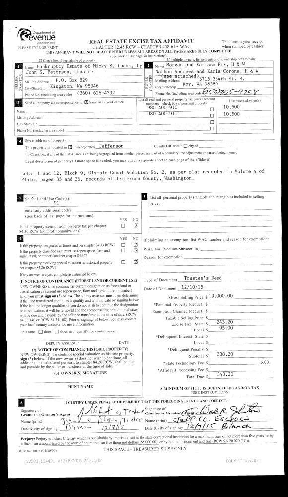 | 3 | 12/01/2000 | SWD | Statutory Warranty Deed | KERL, PETER/CATHERINE | TADENA, RONALD/CARLINA | 0 | 0 | $180,000.00 | 91117 | 0 |