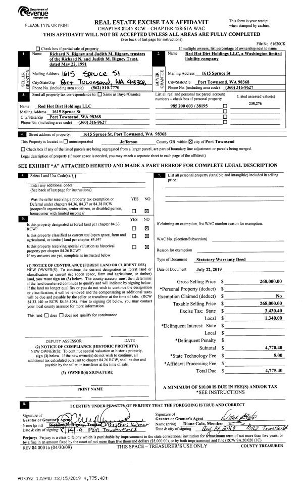 | Mailing Address: | 1609 SPRUCE ST PORT TOWNSEND, WA 98368-3343 | % Ownership: | 100.0000000000% |