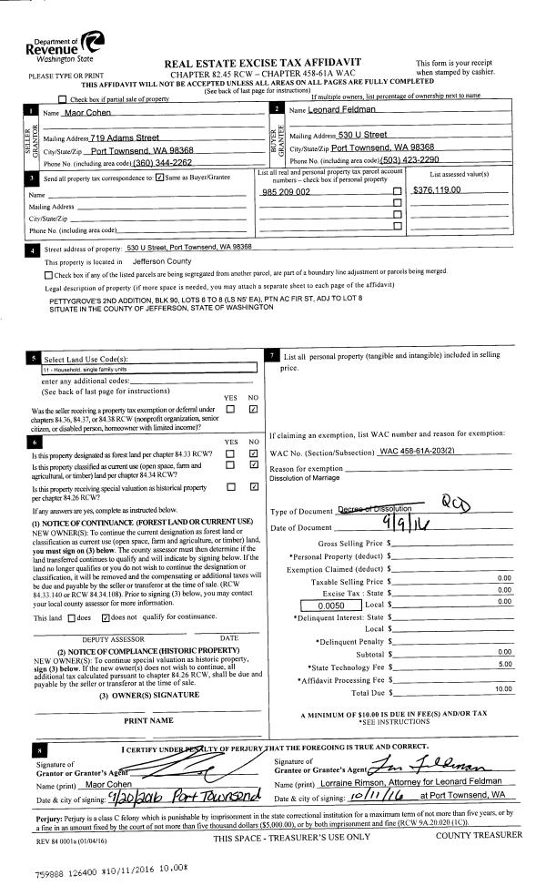 | Mailing Address: | 530 U ST PORT TOWNSEND, WA 98368-3533 | % Ownership: | 100.0000000000% |