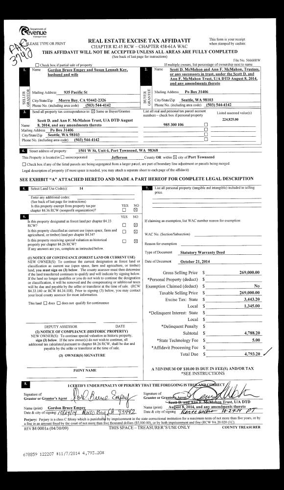 | 1 | 10/21/2014 | SWD | Statutory Warranty Deed | GORDON B EMPEY | SCOTT & ANN MCMAHON TRUST | | | $269,000.00 | 122207 | |