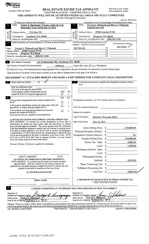 | 4 | 05/28/2013 | SWD | Statutory Warranty Deed | TIMOTHY W & JANET E WHYTE TRUST | LAWRENCE WENNER & SUSAN RICE | | | $320,000.00 | 119334 | |