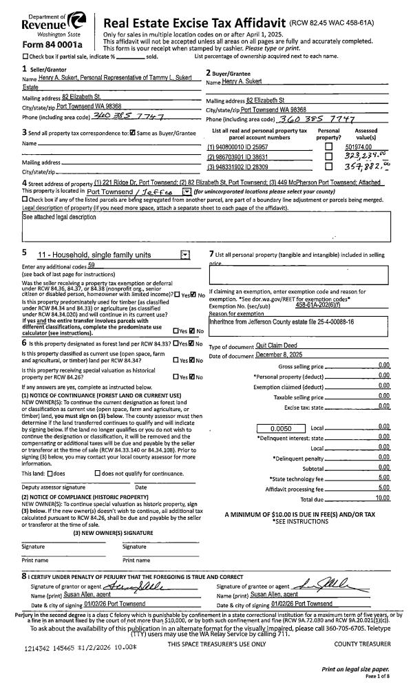 | 1 | 12/08/2025 | QCD | Quit Claim Deed | HENRY A SUKERT | HENRY A SUKERT | | | | 145465 | |
