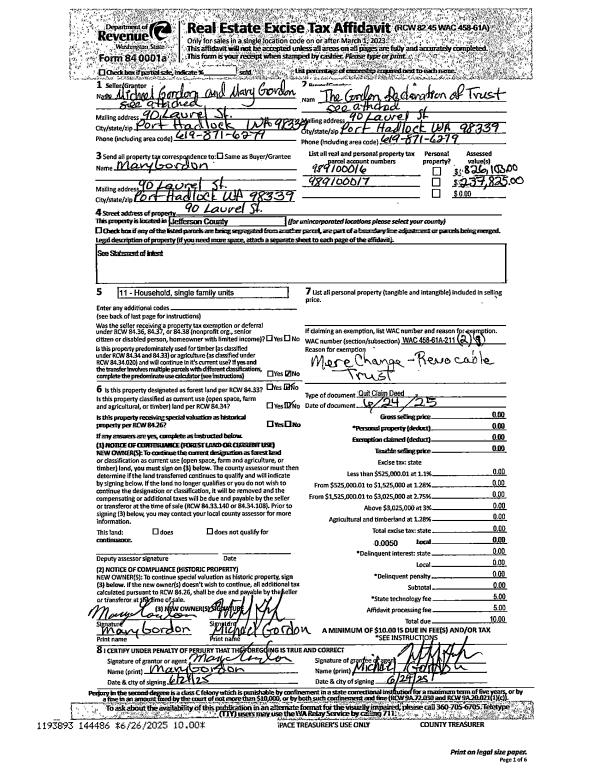 | 1 | 06/26/2025 | MISC | MISC | GORDON DECLARATION OF TRUST | GORDON DECLARATION OF TRUST | | | | 0 | LOT CONSOL |