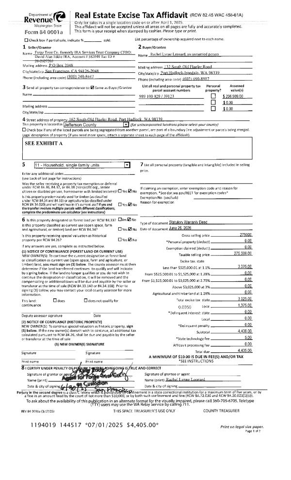 | 1 | 06/26/2025 | SWD | Statutory Warranty Deed | IRA SERVICES TRUST COMPANY | RACHEL L LEONARD | | | $275,000.00 | 144517 | |