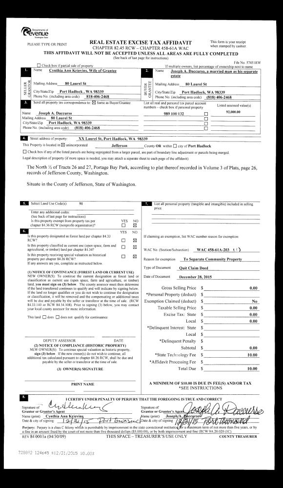 | 2 | 12/28/2015 | QCD | Quit Claim Deed | | | | | | 124645 | |