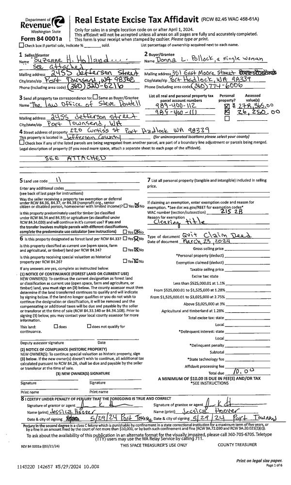 | 2 | 03/23/2024 | QCD | Quit Claim Deed | | DONNA L POLLOCK | | | | 142657 | |