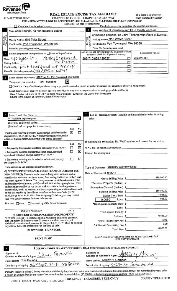 | 3 | 09/15/2016 | SWD | Statutory Warranty Deed | CHIE BOUNDS | ASHLEY N GARRISON | | | $385,000.00 | 126294 | |