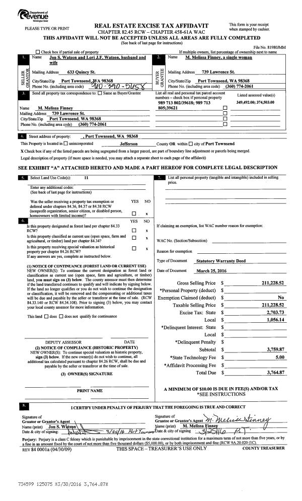 | 2 | 02/29/2016 | BLA | Boundary Line Adjustment | JON S WATSON | | | | | 124959 | |