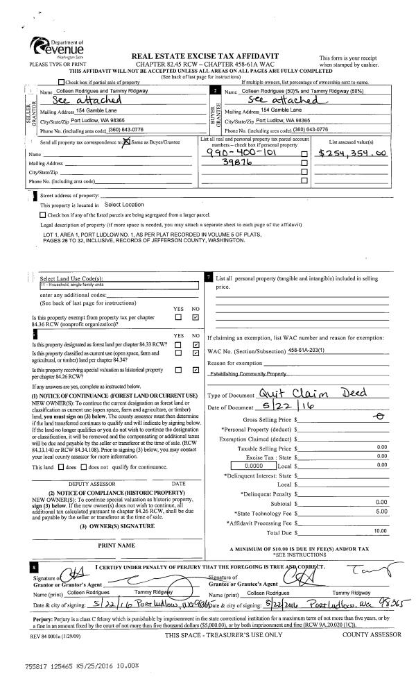 | 2 | 05/22/2016 | QCD | Quit Claim Deed | | | | | | 125465 | |