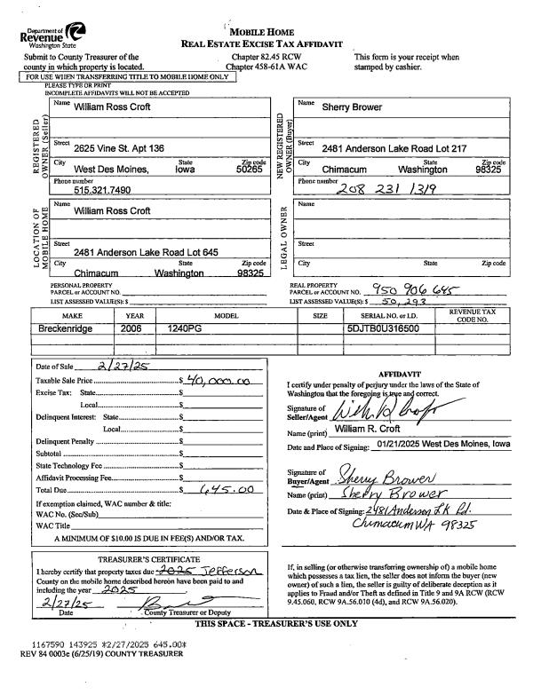 | Mailing Address: | PO BOX 1152 PORT HADLOCK, WA 98339-1152 | % Ownership: | 100.0000000000% |