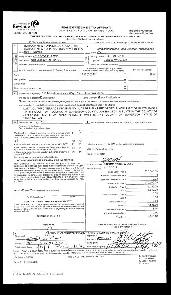 | Property ID: | 39979 | Abbreviated Legal Description: | PORT LUDLOW #1 AREA 2 LOT 30 |