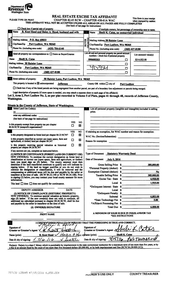 | 1 | 07/05/2016 | SWD | Statutory Warranty Deed | R KENT HOOD | SHELLI K CATES | | | $385,000.00 | 125845 | |