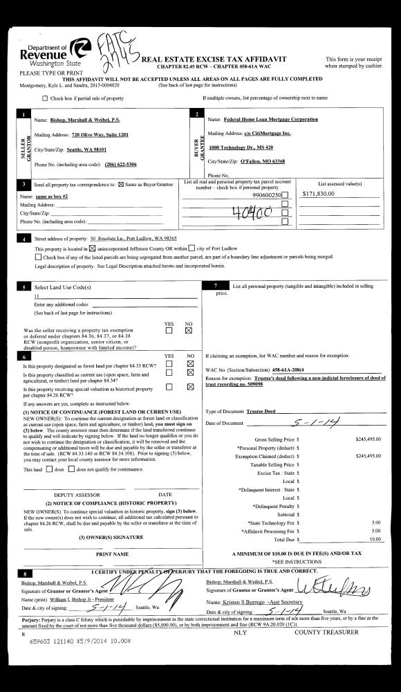 | 3 | 05/01/2014 | TRED | Trustee Deed | BISHOP, MARSHALL & WEIBEL | FEDERAL HOME LOAN MORTGAGE | | | | 121140 | |