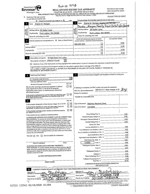 | 1 | 04/09/2020 | SWD | Statutory Warranty Deed | ELAINE M MORGAN | BRAZALEEN K & KEVIN G LYONS | | | $469,000.00 | 134215 | |
