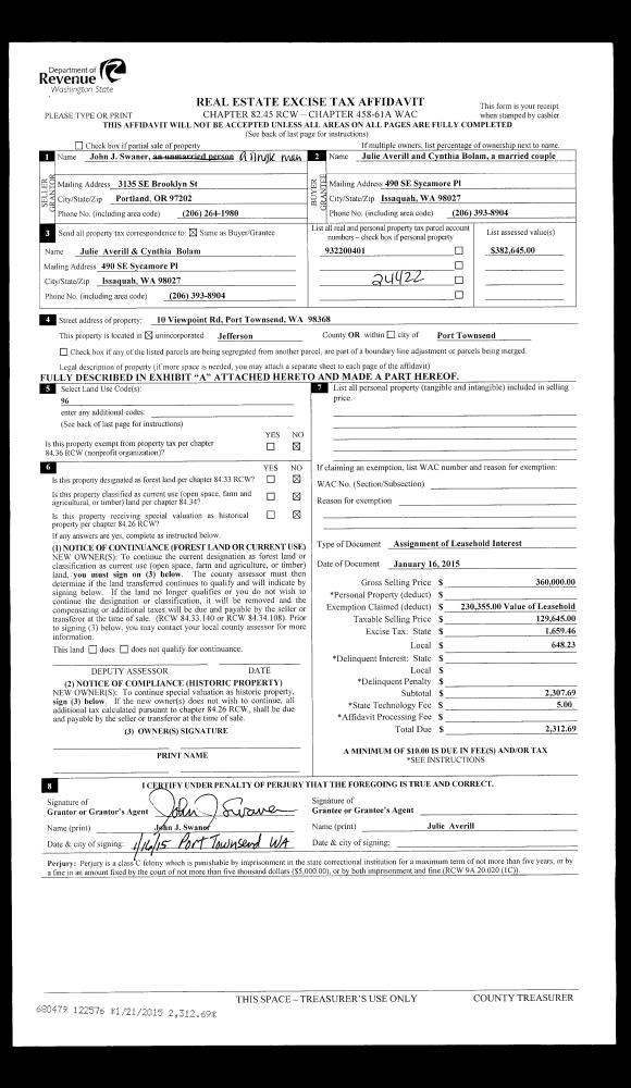 | Mailing Address: | 281 PIONEER DR PORT LUDLOW, WA 98365-9653 | % Ownership: | 100.0000000000% |