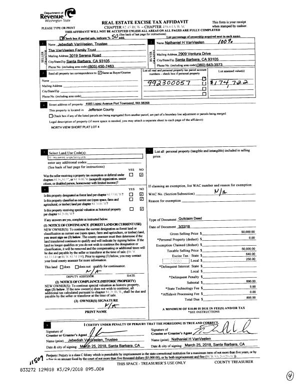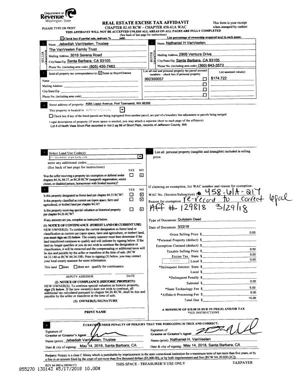 | Mailing Address: | 4585 LOPEZ AVE PORT TOWNSEND, WA 98368-2727 | % Ownership: | 100.0000000000% |