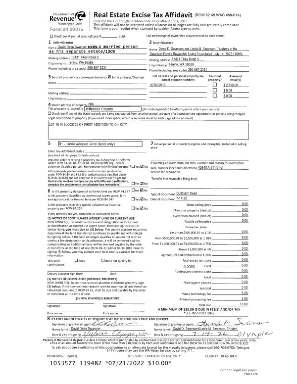 | Mailing Address: | HAMILTON P OSWALD 14538 SE 50TH ST BELLEVUE, WA 98006-3502 | % Ownership: | 100.0000000000% |