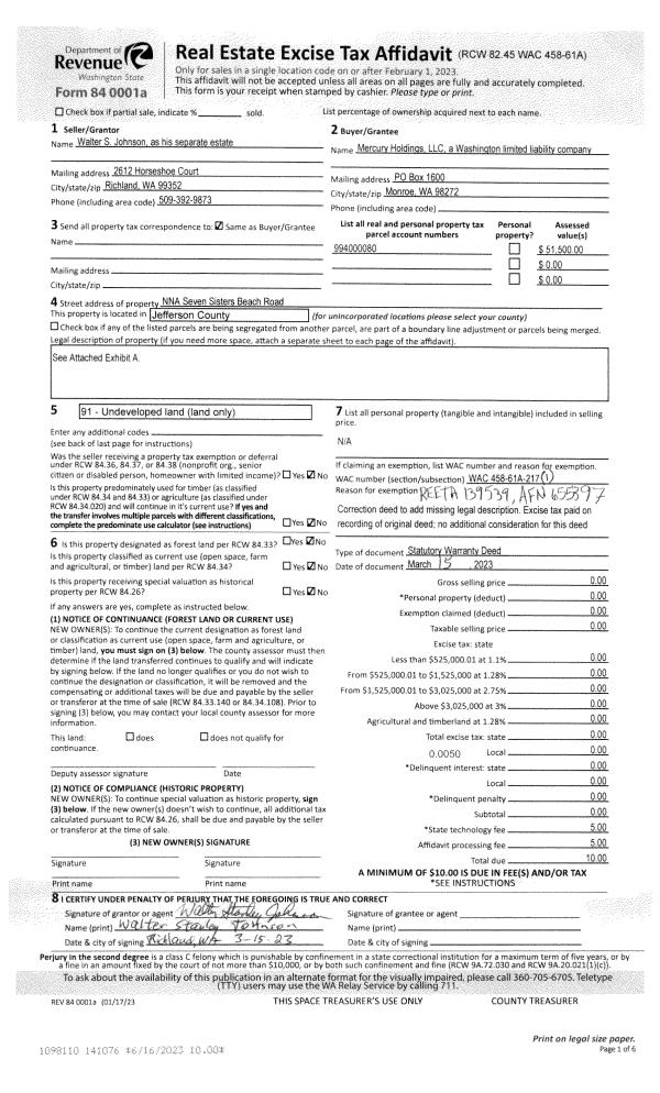 | 1 | 03/15/2023 | SWD | Statutory Warranty Deed | | MERCURY HOLDINGS LLC | | | | 141076 | |