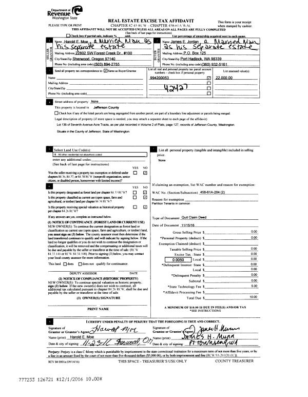 | 5 | 11/15/2016 | QCD | Quit Claim Deed | | | | | | 126721 | |