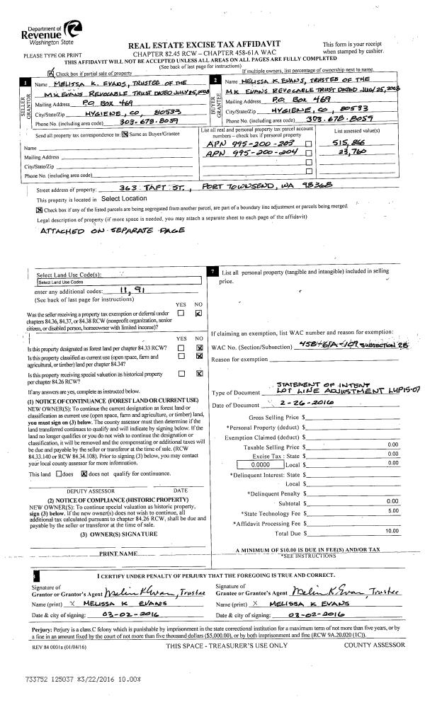 | 2 | 10/07/2016 | SWD | Statutory Warranty Deed | MELISSA K EVANS TRUSTEE | THOMAS MICKA & SANDRA BURKETT | | | $553,300.00 | 126423 | |