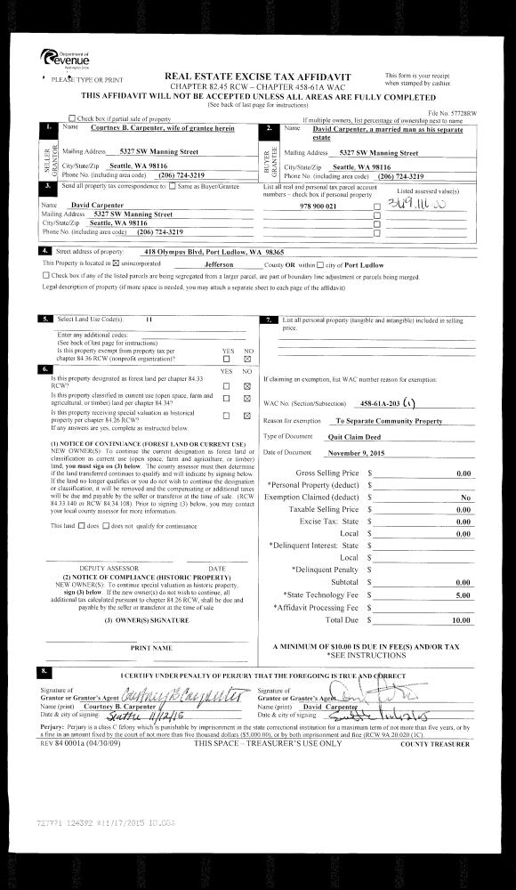 | Mailing Address: | 1033 LAWRENCE ST PORT TOWNSEND, WA 98368-6523 | % Ownership: | 100.0000000000% |