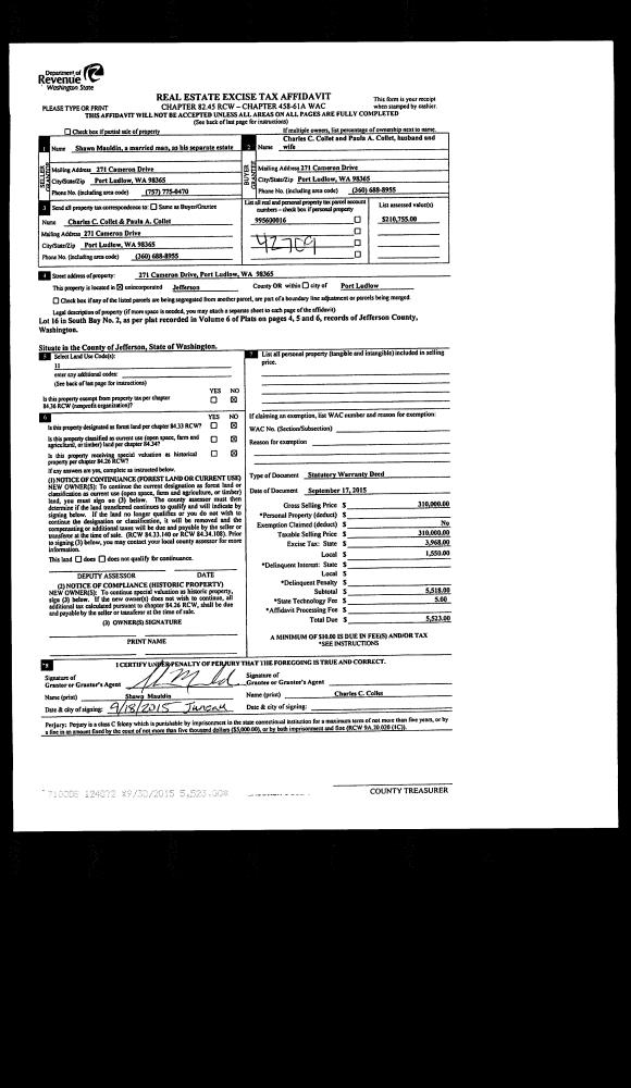 | 1 | 09/17/2015 | SWD | Statutory Warranty Deed | SHAWN MAULDIN | CHARLES & PAULA COLLET | | | $310,000.00 | 124072 | |