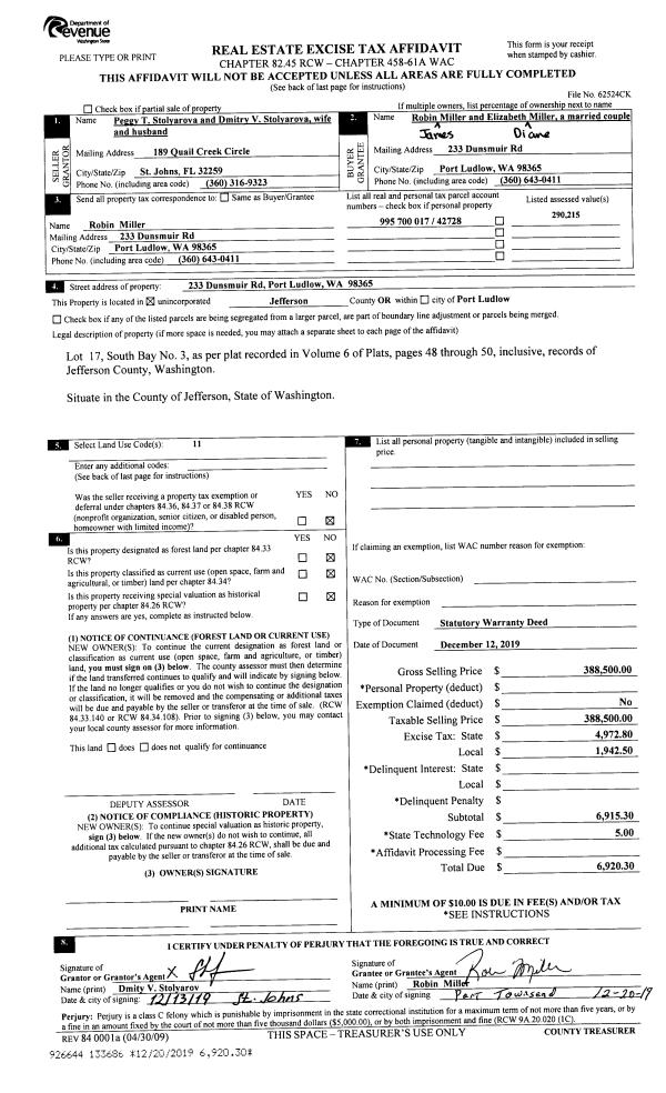 | 2 | 12/12/2019 | SWD | Statutory Warranty Deed | PEGGY T STOLYAROVA | ELIZABETH & ROBIN MILLER | | | $388,500.00 | 133686 | |