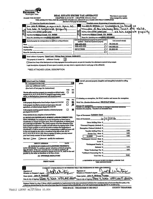 | 3 | 06/14/2016 | QCD | Quit Claim Deed | JOHN R WHITNEY | WHITNEY REVOCABLE TRUST | | | | 125707 | |