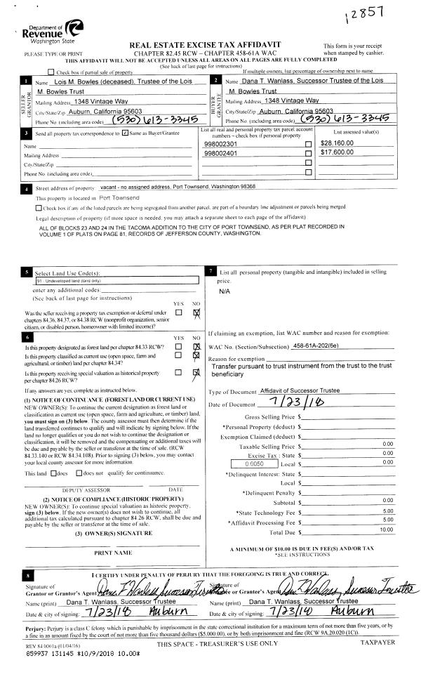| 1 | 01/17/2019 | QCD | Quit Claim Deed | LOIS M BOWLES TRUST | DANA T & MARK H WANLASS | | | | 131883 | |