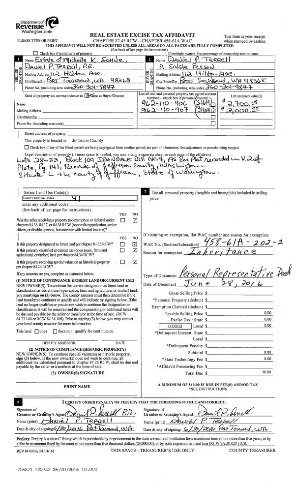| Mailing Address: | 753 TALA SHORE DR PORT LUDLOW, WA 98365 | % Ownership: | 100.0000000000% |