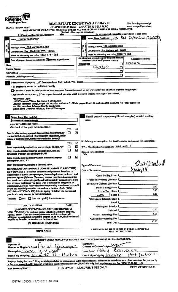 | 1 | 06/26/2018 | QCD | Quit Claim Deed | | | | | | 130509 | |