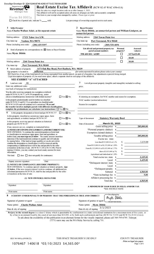 | 1 | 03/01/2023 | SWD | Statutory Warranty Deed | CHARLES W ADAIR | MYSTE DIBBLE | | | $285,000.00 | 140618 | |