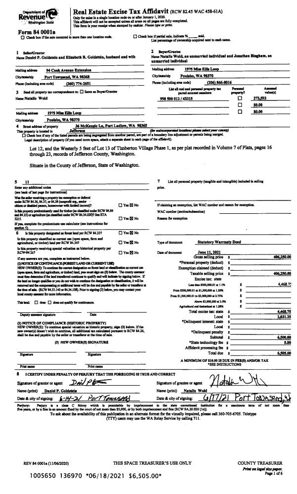 | 3 | 06/11/2021 | SWD | Statutory Warranty Deed | DANIEL PAUL GOLDSTEIN | NATALIE WOLD | | | $406,250.00 | 136970 | |