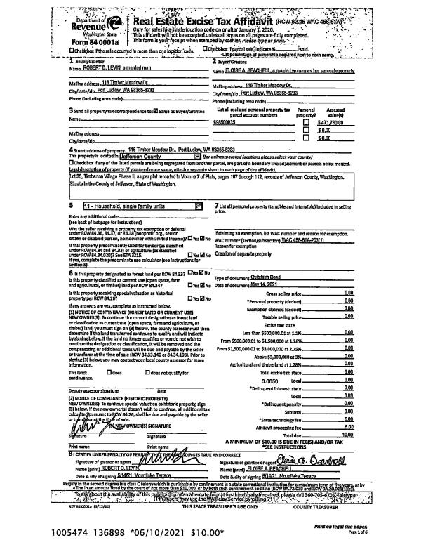 | 3 | 05/14/2021 | QCD | Quit Claim Deed | ROBERT D LEVIN | ELOISE A BEACHELL | | | | 136898 | |