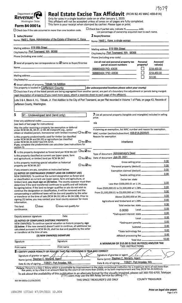 | 1 | 04/08/2021 | SWD | Statutory Warranty Deed | RUTH P PORTER | JAMMCO INVESTORS LLC | | | $320,000.00 | 136494 | |