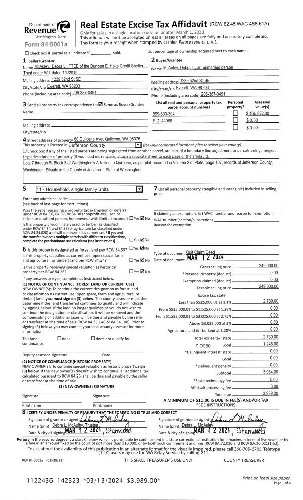 | 1 | 03/12/2024 | QCD | Quit Claim Deed | DUNCAN HOKE CREDIT SHELTER TRUST | DEBRA L MCAULEY | | | $249,000.00 | 142323 | |