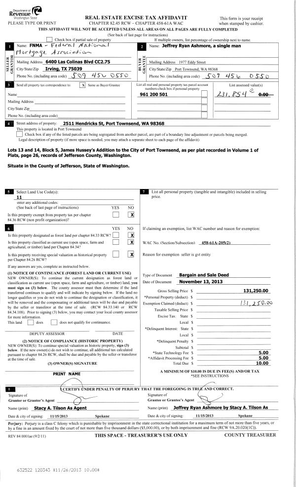 | 1 | 08/13/2024 | SWD | Statutory Warranty Deed | PORT TOWNSEND LABORATORIES INC TRUST | BAYSIDE HOUSING & SERVICES | | | $500,000.00 | 143103 | |