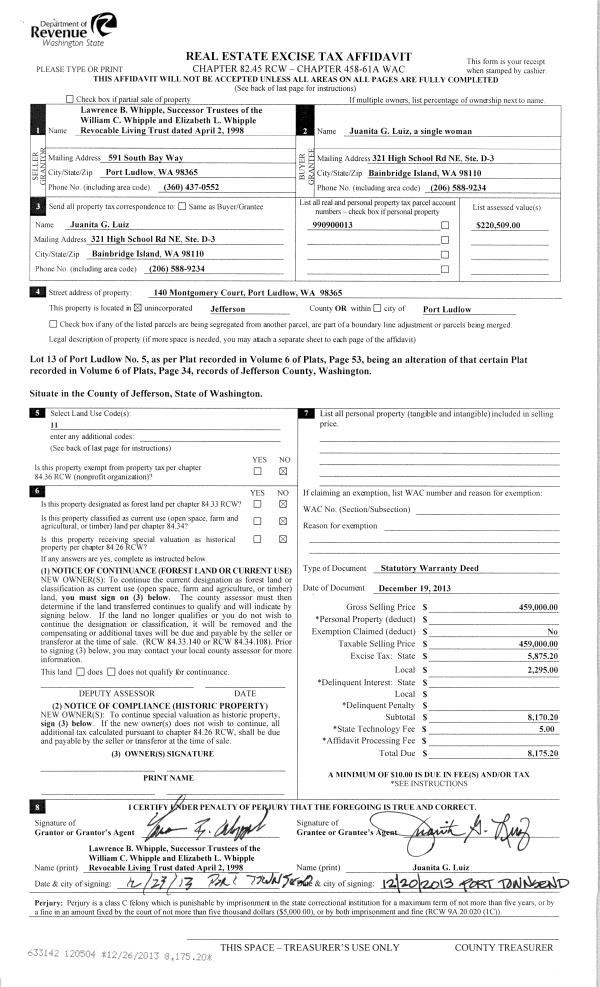 | Mailing Address: | JENNIFER L WHITNEY 112 ENFIELD ST PORT TOWNSEND, WA 98368-5202 | % Ownership: | 100.0000000000% |