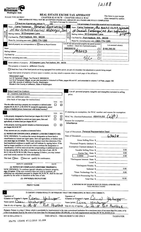| Mailing Address: | DONNA M GREENWAY 1611 CORONA ST PORT TOWNSEND, WA 98368-4703 | % Ownership: | 100.0000000000% |