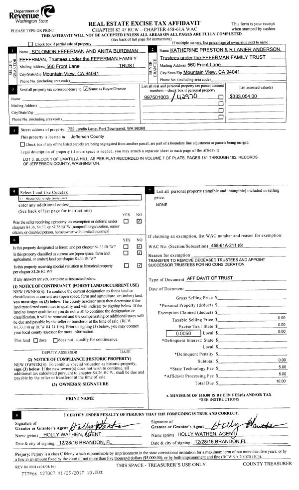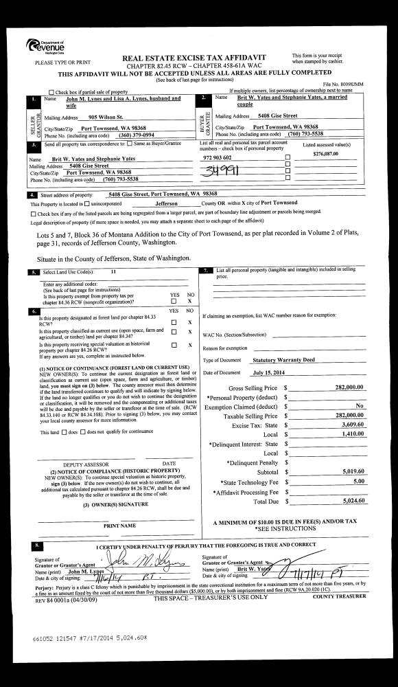 | Mailing Address: | 2426 HAINES ST PORT TOWNSEND, WA 98368-6215 | % Ownership: | 100.0000000000% |