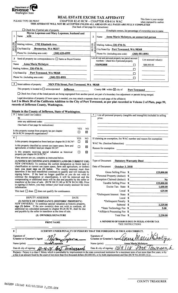 | Mailing Address: | 2404 35TH ST PORT TOWNSEND, WA 98368 | % Ownership: | 100.0000000000% |