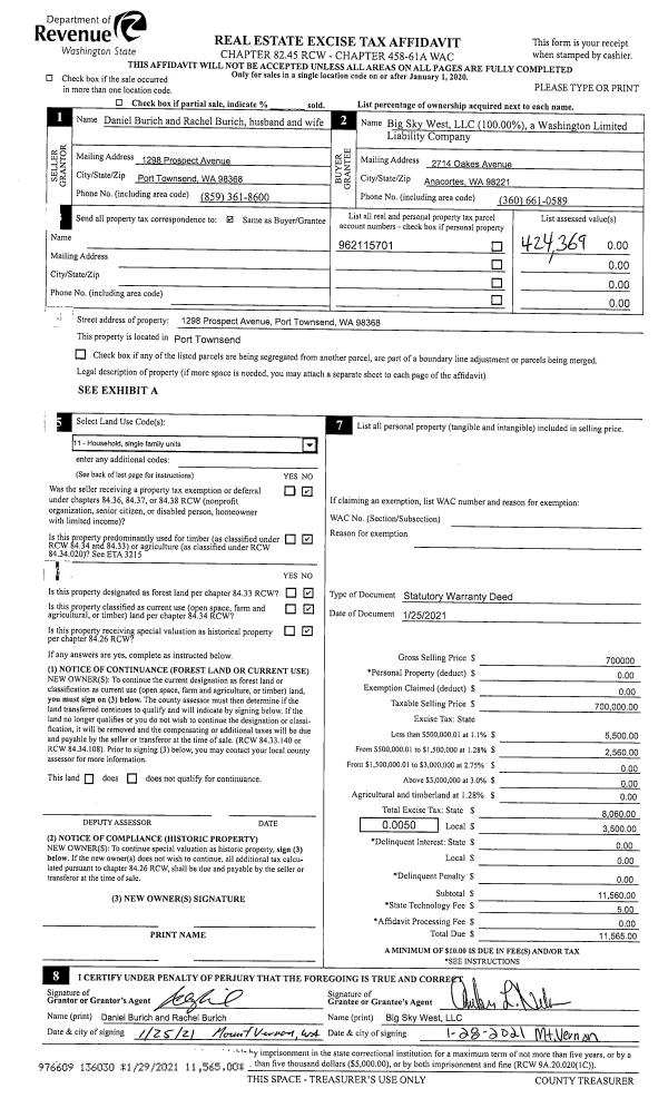 | 2 | 06/11/2021 | SWD | Statutory Warranty Deed | | | | | | 137446 | |