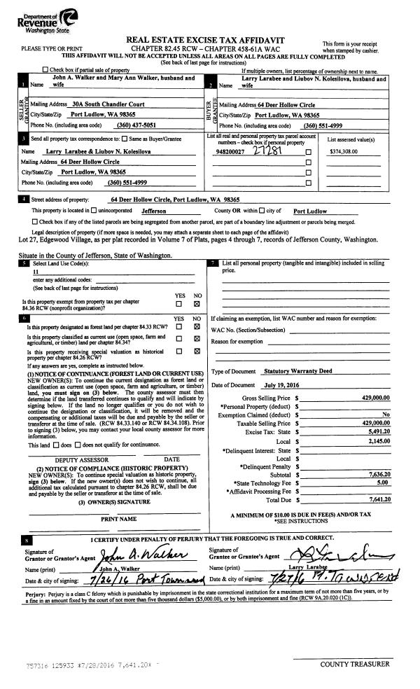 | Mailing Address: | 2513 IVY ST PORT TOWNSEND, WA 98368-6821 | % Ownership: | 100.0000000000% |
