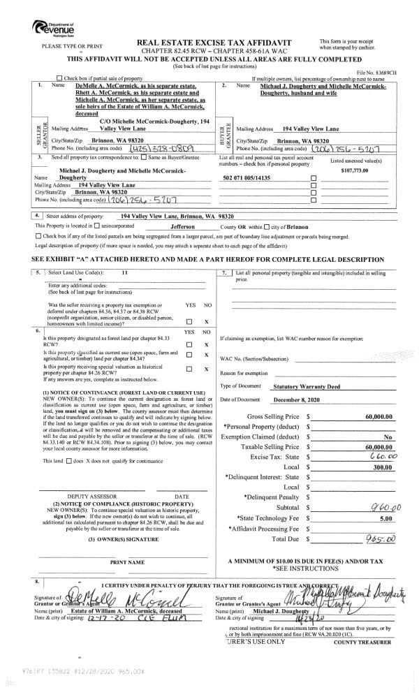 | 4 | 01/19/2022 | SWD | Statutory Warranty Deed | REVOCABLE LIVING TRUST OF JUDITH W HEATH | ROGER & JUDITH HEATH JTWROS | | | | 138446 | |